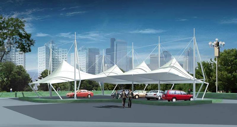 3、雨雪天气不必开展张拉膜膜材的安装,膜布上面有降水,表层很滑,人站在上边很危险。可以等雨天结束再作业。